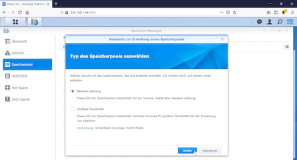A pop-up window then asks me what type of group I want to create. I can choose between two options: "better performance" or "greater flexibility". Unfortunately, the explanations are meagre. From a technical point of view, what really changes for my NAS if I choose either option?