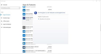 If you click on "Uninstall" in the pre-installed McAfee security programme, you will be bitterly disappointed. Instead of the uninstaller, a small window opens that tries to load a website. But it always shows no content. Instead, it only asks you to refresh the page.