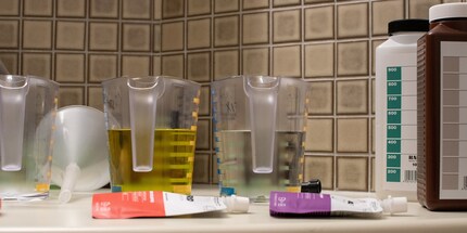 To mix the chemicals, I need several measuring cups. Because I don't want to use the same ones I use for cooking, I have to buy new ones. Something for stirring that doesn't come from the kitchen would also be good. I also get a canister of distilled water. Some photographers recommend this because the water hardness is always the same and the results can be reproduced better. But you can also use tap water.
