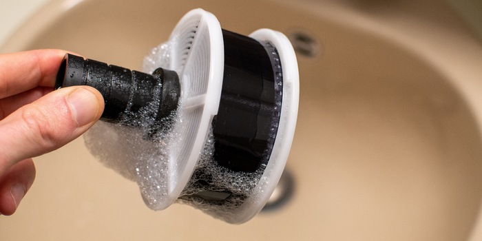 Then add the wetting agent. This is something like liquid soap without flavouring and is intended to prevent stains and streaks during drying. I simply add a splash. I use tap water for the wetting agent.