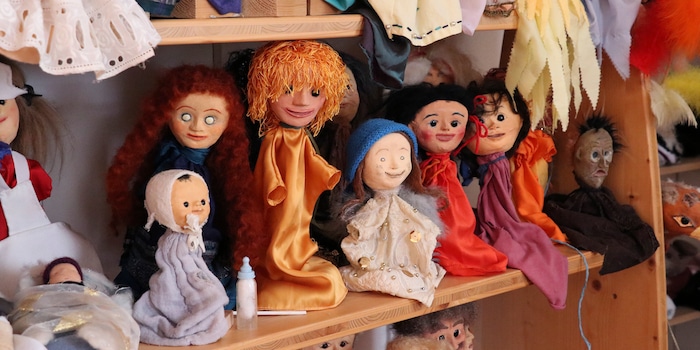 Show allMy optic nerve is overwhelmed. So many colours, shapes and forms in one place. I look around, get very close to the shelves and soak up all the details. Dolls as far as the eye can see. One is practically staring at me. It's a skull in a black cape. It sits enthroned on a shelf and stands out from a sea of cheerful faces. A shiver runs down my spine. "Fear and courage are emotions that always play a role here," explains Brigit Oplatka. She is a puppet play therapist and works with young and old in the colourful setting of the "Sterntaler" fairytale and puppet studio in Winterthur. "Mainly with little ones. Adults are much less likely to engage in this complementary form of therapy with figures, although it is suitable for all ages."