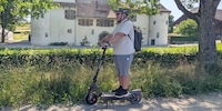 The first section, around Niederuster, is a flat, asphalt path. In other words, it’s ideal for getting familiar with the Navee scooter. I notice that the acceleration varies by mode. Standard mode is pretty leisurely, with the 500-watt motor gently boosting the ST3 Pro to its permitted top speed of 20 km/h. However, I prefer Sport mode, which sees the scooter briefly muster up its peak power of 1,350 watts to reach its top speed more quickly. When I tested the scooter with a load of 100 kilogrammes, it managed an 18-per-cent incline.