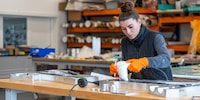 Rail strips are welded or glued. On this point too some people like to cheat, because the welding seems to be of better quality. "Some try to fool the customer a little," explains Strobel. With us, the two rail strips are glued together to prevent the boards from twisting," says Strobel, "but at first glance it's hard to tell because of the extremely thin layer of glue. If you look at it under UV light, you can see a yellowish trace. "After drying at high temperature, you press the contact adhesive down hard and it holds perfectly," continues Strobel. "And to make sure we don't miss, we glue one or two millimetres too much. "The main thing is that the board holds well.