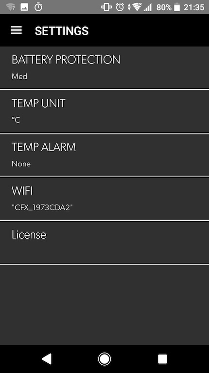 What’s more, Dometic CoolFreeze CFX 40W is smart. Or at least she tries to be. In any case, she comes with a designated app. So I download it, switch on the wi-fi and connect to my cool box. The app lets me: