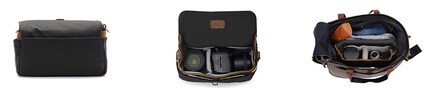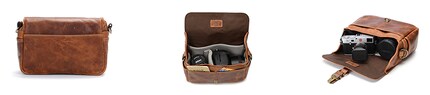 The bags made from top-of-the-range materials are handcrafted, in waxed canvas with leather accents or completely in leather. They are large enough to hold a camera and one to two extra lenses. The strap can be removed in a flash to use the bag as an insert.