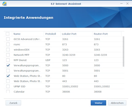 If you set up your Internet access on a Synology NAS using the wizard or activate a new service, port forwarding is automatically suggested to you.