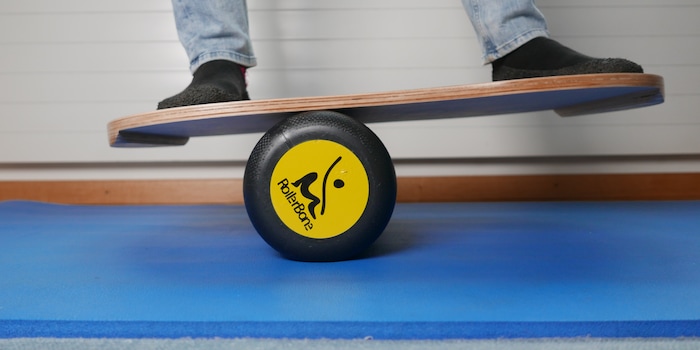 The result of my short ski season: a bruised cruciate ligament in the family and one more RollerBone at home. A balance board, adapted for knee rehabilitation, is a fun object and a piece of fitness equipment at the same time.