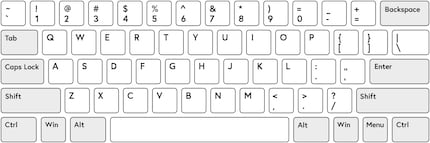 There’s one thing worth noting here. When Raspbian boots, it assumes by default that your keyboard has an American layout and looks as follows: