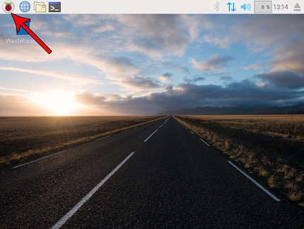 Raspbian’s equivalent to the Windows start bar is at the top of the screen. Just click on the terminal symbol.