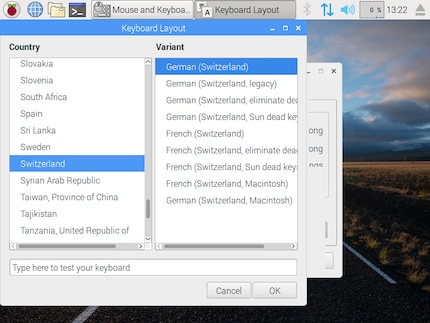 This is where you can change your keyboard layoutSearch for Switzerland and select "German (Switzerland)". Click OK until you’re back on the desktop