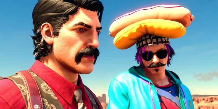 Top of the pops for me, however, remains the LARP quest series. LARP stands for Live Action Role Playing. Eli is a big fan, and as his friend, I naturally help him create his own fantasy kingdom. LARP seems to be a popular sport in Santo Ileso, as half the town duels in outfits made from cardboard. In one mission we have to storm the castle of the evil House Phoenix, as they stole the city’s entire tape supply. In another, we summon the Bowelrod. A powerful beast that disables its enemies with a thunderous roar – it’s a cardboard sandworm roped to a vehicle armoured with mattresses. LARP fighting is similar to the rest of the game, except that no one gets hurt. But everyone involved is fully committed and falls to the ground theatrically when I rip out their hearts or spray confetti when shooting them in the head with plastic arrows. Obvious? Nope. Hilarious? Yep.