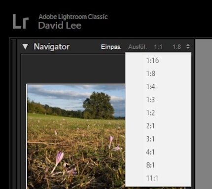 In the navigator you can see the different zoom levels of Lightroom. You can select one here.