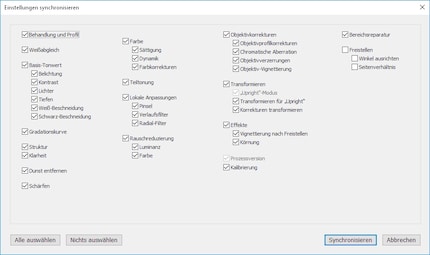 Now click on the "Synchronise settings" button, which is unfortunately only called "Sync settings" - to be found at the bottom right. In the following dialogue window, you can exclude certain settings from the transfer if required.