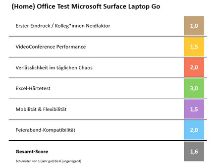 The Surface Laptop Go and I really bonded during our week together and I'm almost a little wistful about sending it back to Microsoft. The overall score from all the tests is a 1.6 with equal weighting of the sub-areas - so basically the Laptop Go is a reliable companion in the (home) office. When it comes to really large (Excel) documents, it reaches its limits and is therefore not a suitable device for my job. However, if you don't need to work with such large files and/or you're a student, this could be the right laptop for you.
