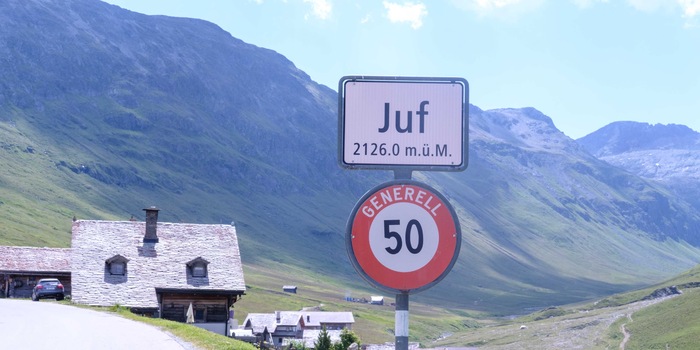 Show all«Here, we call it a tropical night when it gets above 10 degrees!» the landlady at Pension Edelweiss in Juf (website in German) tells me. At 2,126 metres above sea level, Juf is the highest village occupied by permanent residents in Europe. It’s nestled at the back of the Avers Valley in the canton of Graubünden. Here, where the River Rhine begins before meandering towards Rotterdam, the temperature rarely rises above 20 degrees. Boarding my noon train in Zurich on Sunday, the thermometer reads 32 degrees. One train ride, two Postbus rides and a little over three hours later, I’m sitting in the shade on the terrace, the gentle wind blowing in from the mountain making me slightly chilly. It’s 22 degrees and it dawns on me that I’ve brought neither a sweater nor a windbreaker.