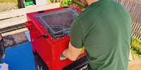 I only notice how small the base plate actually is after shovelling up the box. Still, the just 31 x 24.5-centimetre plate easily holds the 139 x 37 x 99-centimetre carton weighing 38 kilograms. At least if I’m picking it up horizontally at an angle.