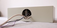 In the end, I get myself a really big cable box. In black, so that it blends nicely with the dark desk. The «LogiLink cable box big» is nice and cheap, but not really high quality. The plastic reminds me of stackable document trays, the concept is simple.