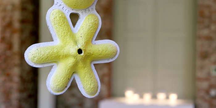 Bamana can’t fly, but it can float. The hanging object is suitable for indoor and outdoor use. It contains neither adhesives nor plastics and is composed of small individual shapes. These are formed from recycled paper and wastewater, coloured with vegetable food dyes, and filled with recycled paper confetti at the end. The material can decompose when wet or be disposed of with the rest of the household recycling paper.