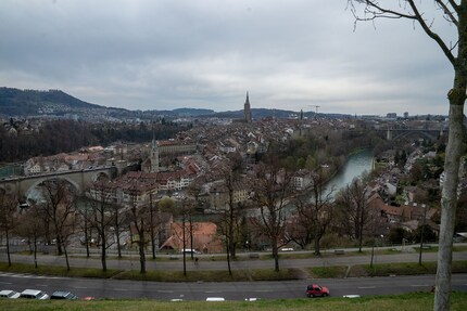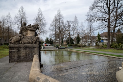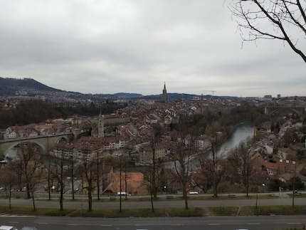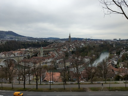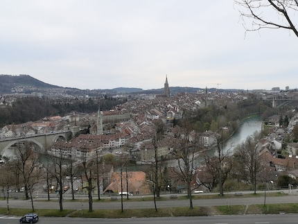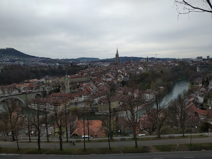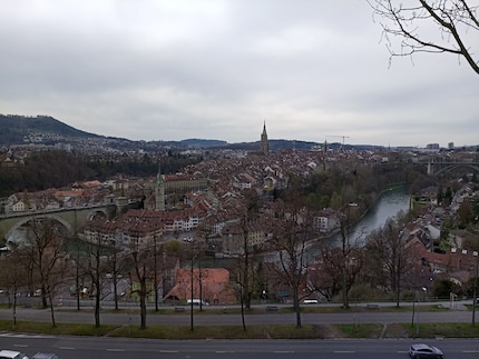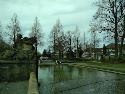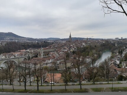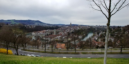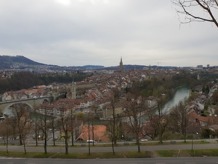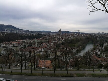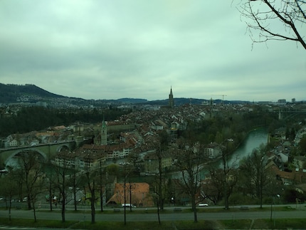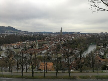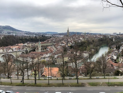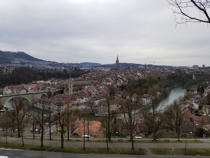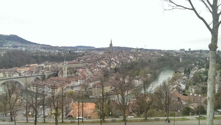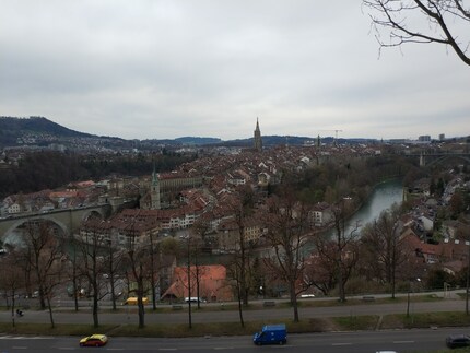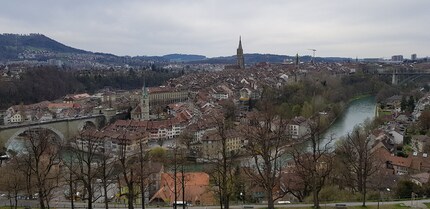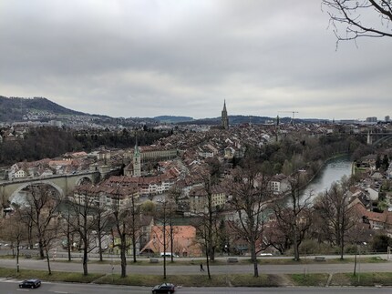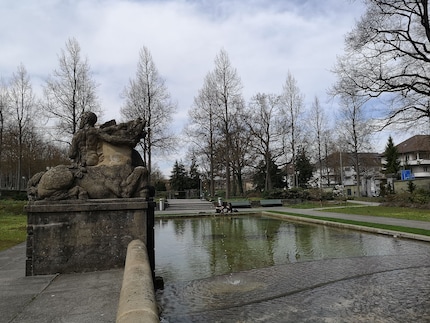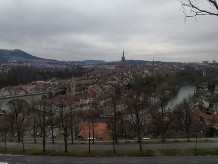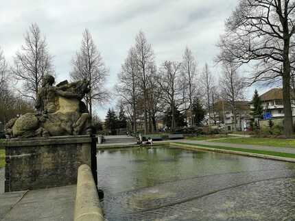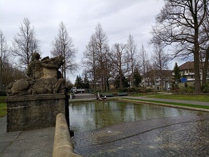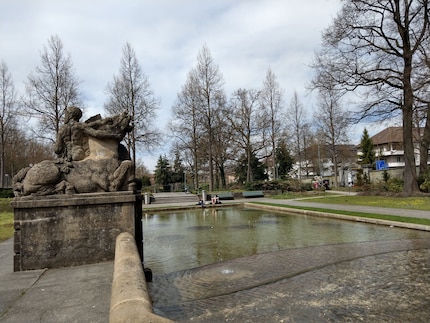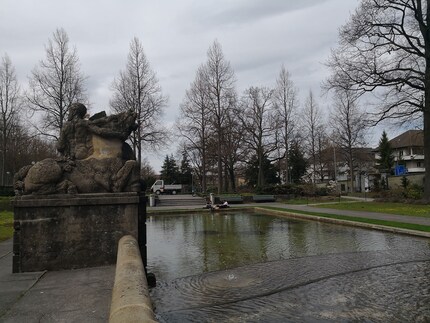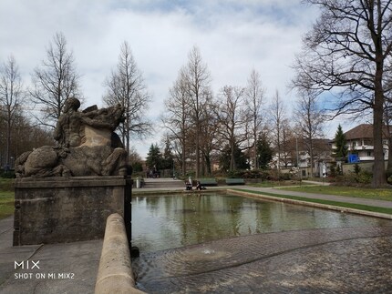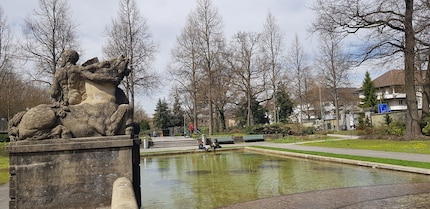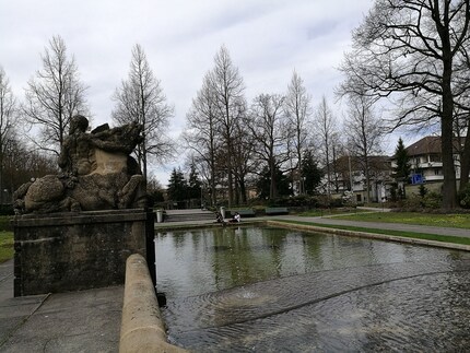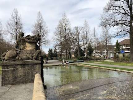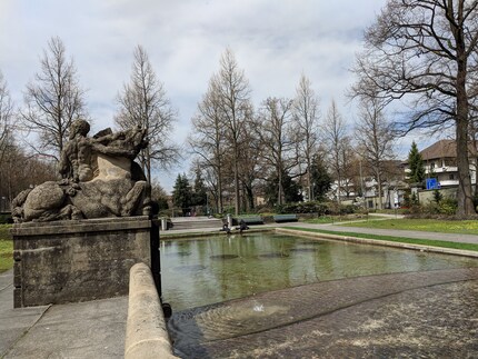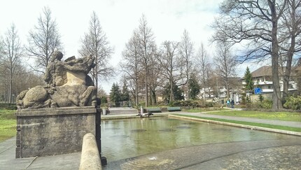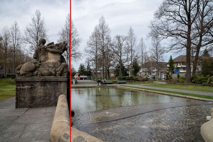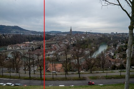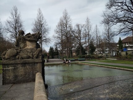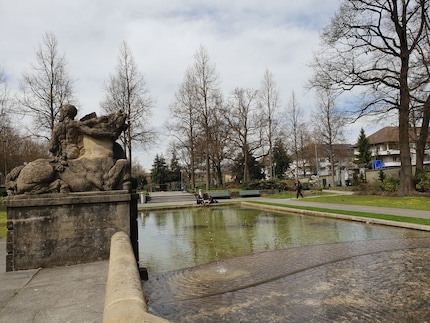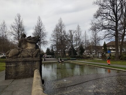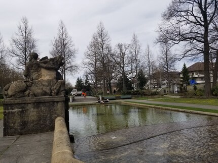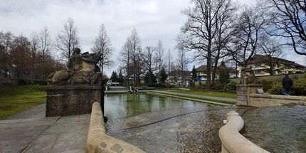 At the Rose Garden in Bern, we looked for a subject with a foreground and background. As the roses hadn't yet bloomed, we opted for the fountain.