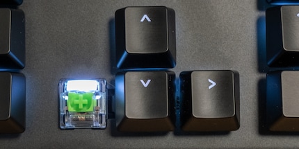The redesigned Razer Green Mechanical Switches are outstanding. They are more stable and wobble less than their predecessor. Otherwise, the switches remain the same. Around 50 grams of actuation force is required until the switch triggers after just 1.9 millimetres. Compared to the Cherry MX Blue, 10 grams less actuation force and 0.3 millimetres less distance to the trigger point is required. I find this particularly pleasant during longer typing and gaming sessions. Like its Cherry counterpart, the key travel is 4 millimetres. The feel when releasing the key and the audible click are satisfying. Thanks to the aluminium plate, it echoes a little more. That's how I like it. Incidentally, the V3 is still available with the linear, yellow switches from Razer, i.e. those without a perceptible or audible trigger. Razer does not have a tactile version on sale.