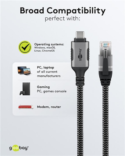 I’d still recommend purchasing a USB network adapter with a higher speed instead of a Goobay cable. This way you’re equipped for the future. If you still want one of the tested cables, you can find all versions available in our store here.