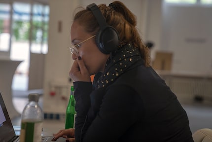 There are no photos. Our camera equipment is half hidden between a concrete pillar and a small bar table. With the large camera case, my well-stocked rucksack and a jumble of cables hanging out of the latter - a German journalist had forgotten his card reader and we were happy to help out - the passage, which is about a metre wide, looks impassable.