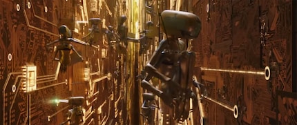 Everywhere Alpha goes, and no matter what races settle on the ever-expanding station: The station's government collects knowledge. In the 28th century, when the plot about agents Valerian and Laureline kicks off, an entire neighbourhood - Alpha is consistently regarded as a city - is dedicated solely to storing this knowledge. This neighbourhood is shown in two short scenes: Walls full of golden storage discs, maintained by the alien race of Omelites, who swap what must be failing hard drives and manage the accumulated knowledge of over 3300 planets. According to the film, this district does not even contain the personal data of the 30 million inhabitants of Alpha, but only the collected knowledge.