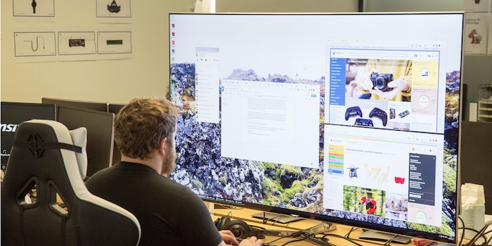 My stupidly huge screen setup attracts co-workers from departments far and wide. They all want to ask me questions or sit in my office chair. A little bit of advice: If you want to make friends in the company you work for, just put a 65-inch screen on your desk and, hey presto, they will appear! There was one question I was asked over and over again.