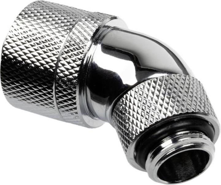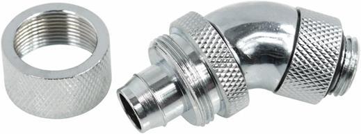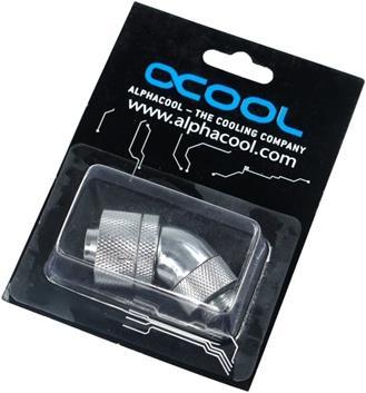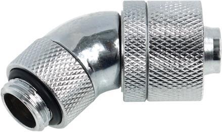 Delivery includes: 1 x Alphacool HF screw fitting 45° G1/4 external thread to 16/10 rotatable - Chrome.