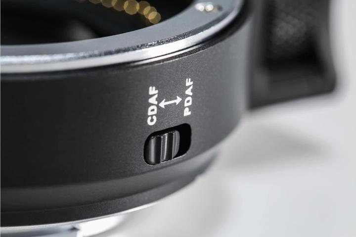 The Viltrox EF-E II electronic adapter (F Booster) is the second generation of this type, released at the end of 2014. Like the previous generation, the built-in optics increase light intake by one F-stop and reduce the focal length by 0.71x. Similar to the last EF-NEX IV, the new F Booster also features a USB port for firmware updates and a switch to select the focus mode between CDAF or PDAF. Note: Not compatible with full-frame cameras in the NEX series.
